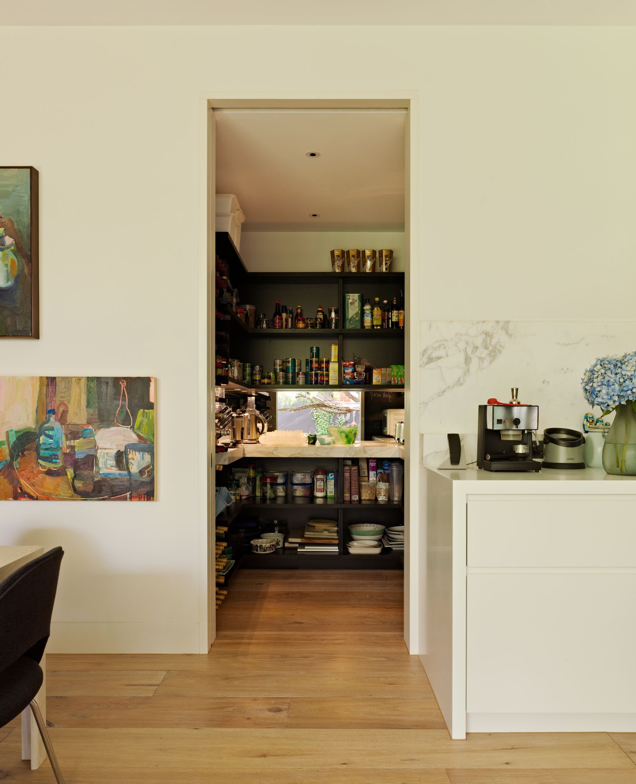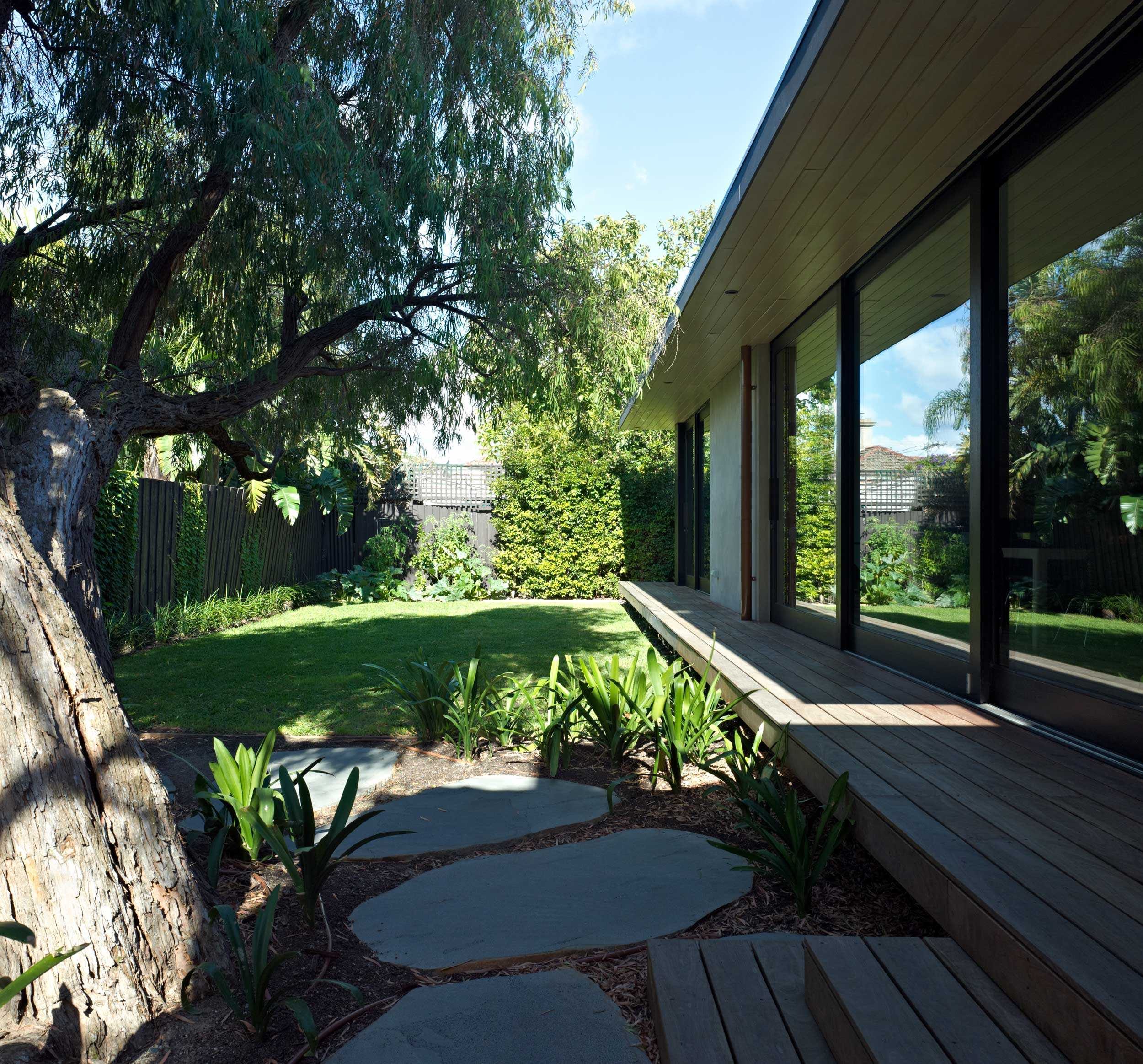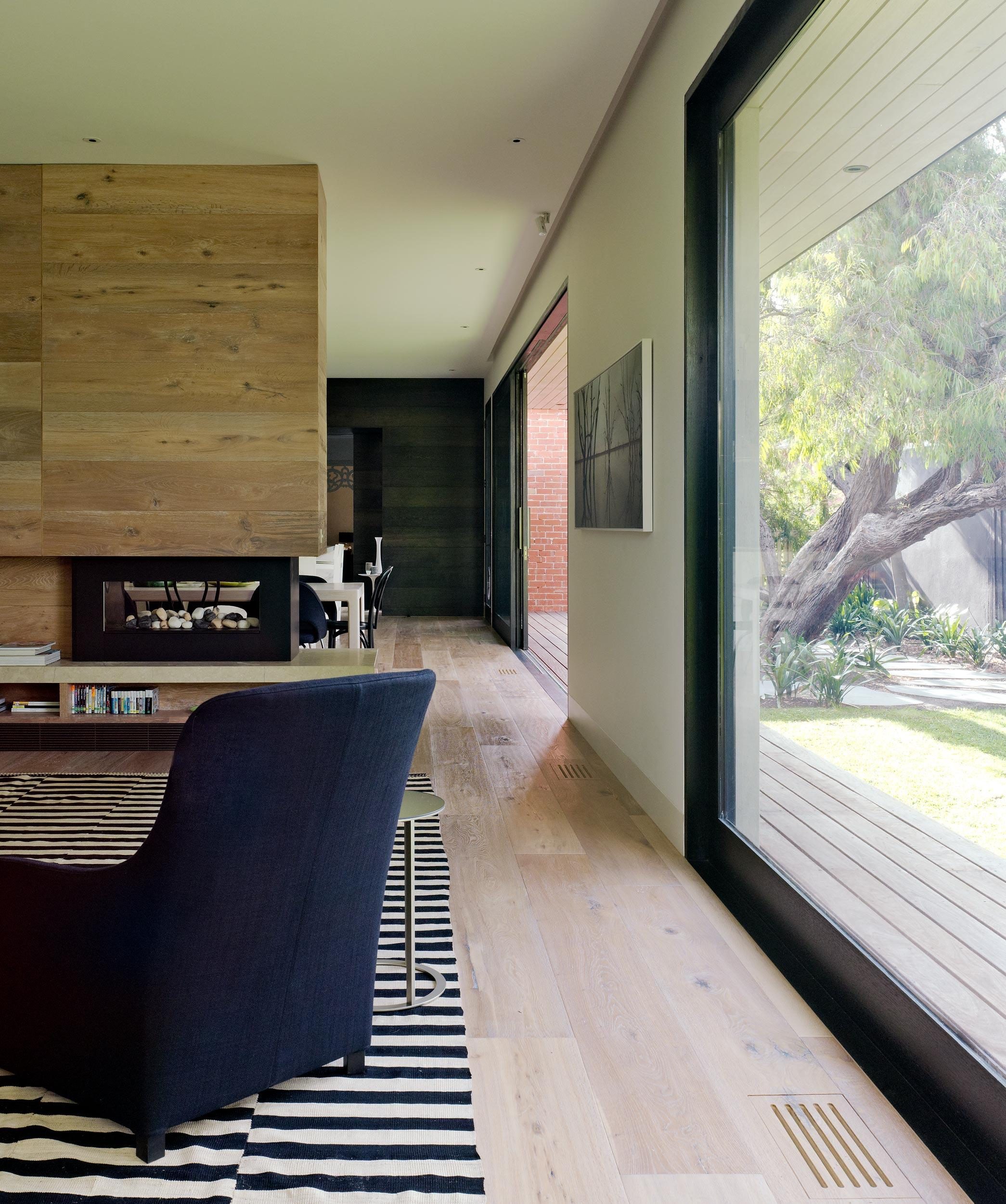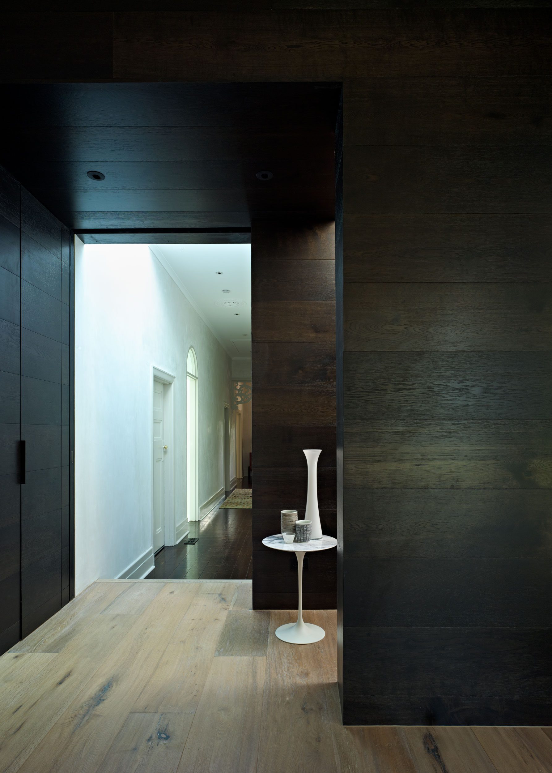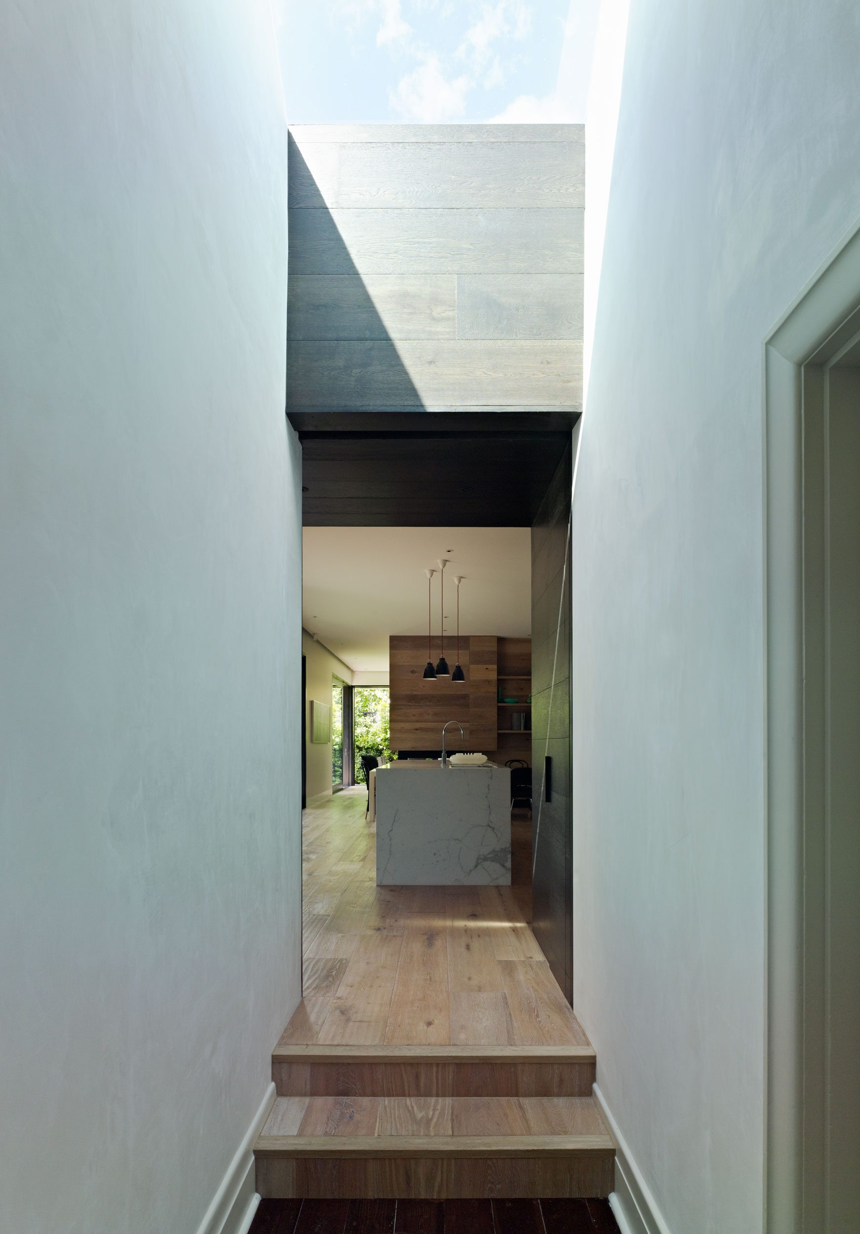 A graceful tree was our inspiration and northern focus point. Colour was limited to the reflection of light, black, natural timber and stone with large black window frames accentuating the view to the garden and inspired by the client’s connection to New York. Reflection of light was intended to create a vibration of light in the space, a whimsy. Skylights placed strategically create shafts of light which move throughout the day and give movement to the space, almost like a reverberation.